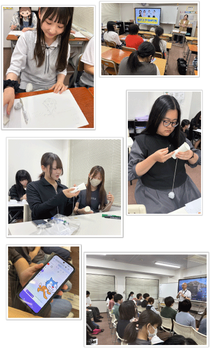 『ゲーム』では、一人ひとりがスマホを使って簡単なゲームプログラミングを行いました。試行錯誤を繰り返す中でゲーム作りの楽しさや奥深さを体感することができました。またゲーム関連の職業の種類や働き方についても教えていただくことができました。