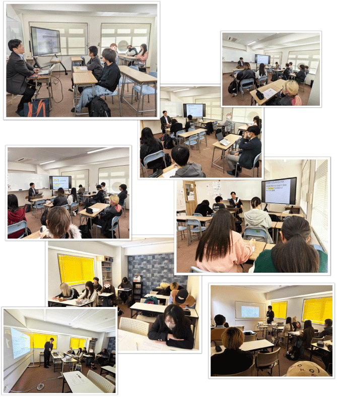 『進路の決め方』『学部と職業の関連』『オープンキャンパスのポイント』『総合型・推薦対策』などなど…内容盛りだくさん。生徒は真剣な表情で熱心にメモをとっていました。